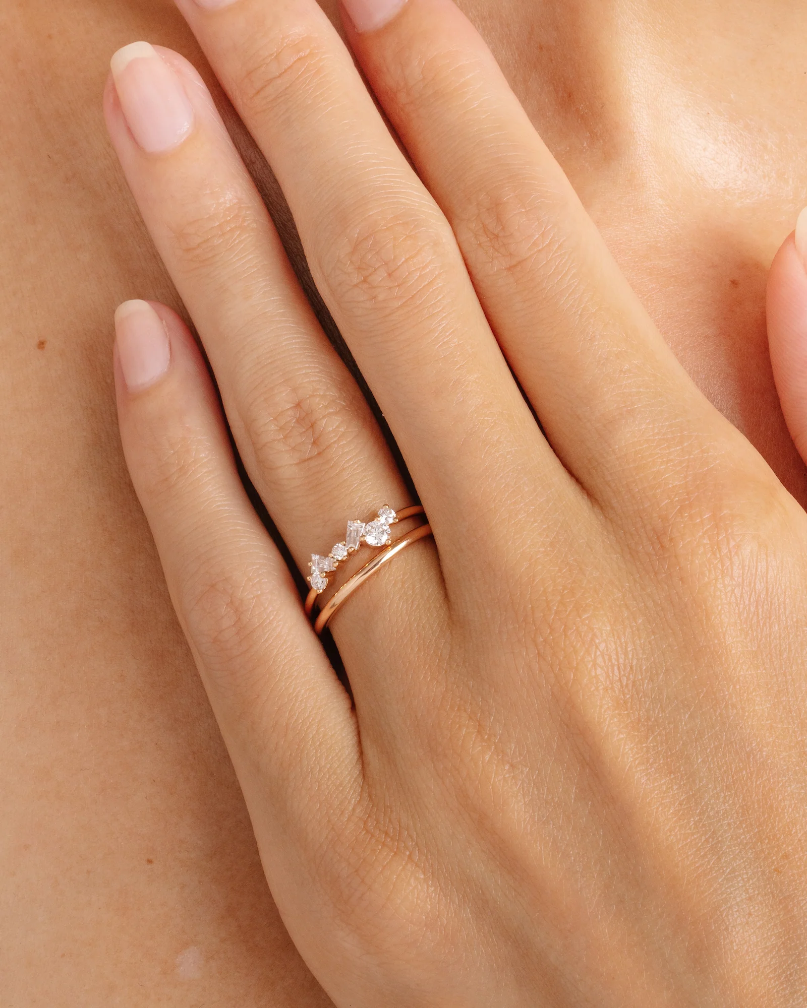 - En fiançailles, une bague créative et singulière qui se combine parfaitement à une alliance droite.