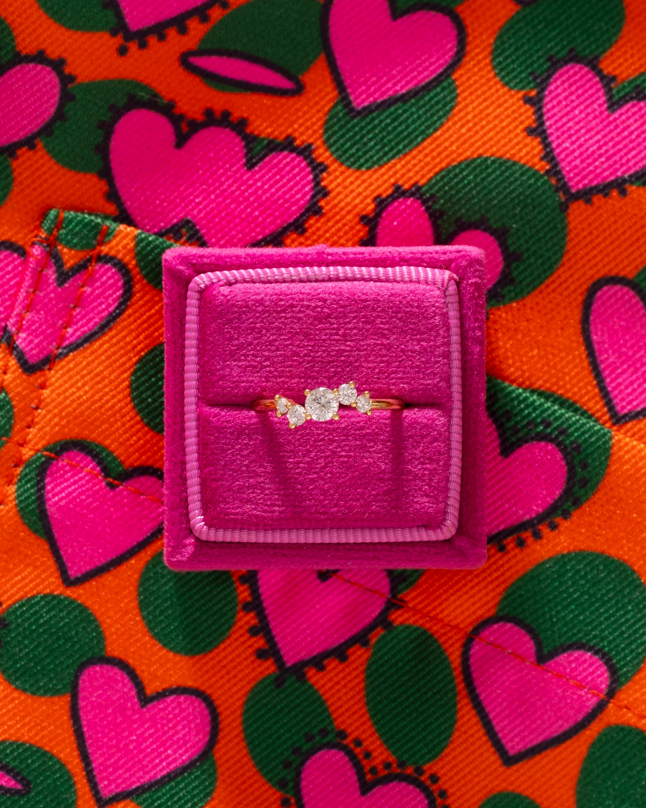 - Bague Eugénie en or rose recyclé 18 cts, sertie de 5 diamants recyclés de taille brillant, de qualité G/H, pureté Vs/Si, pour un total de 0,50 ct.