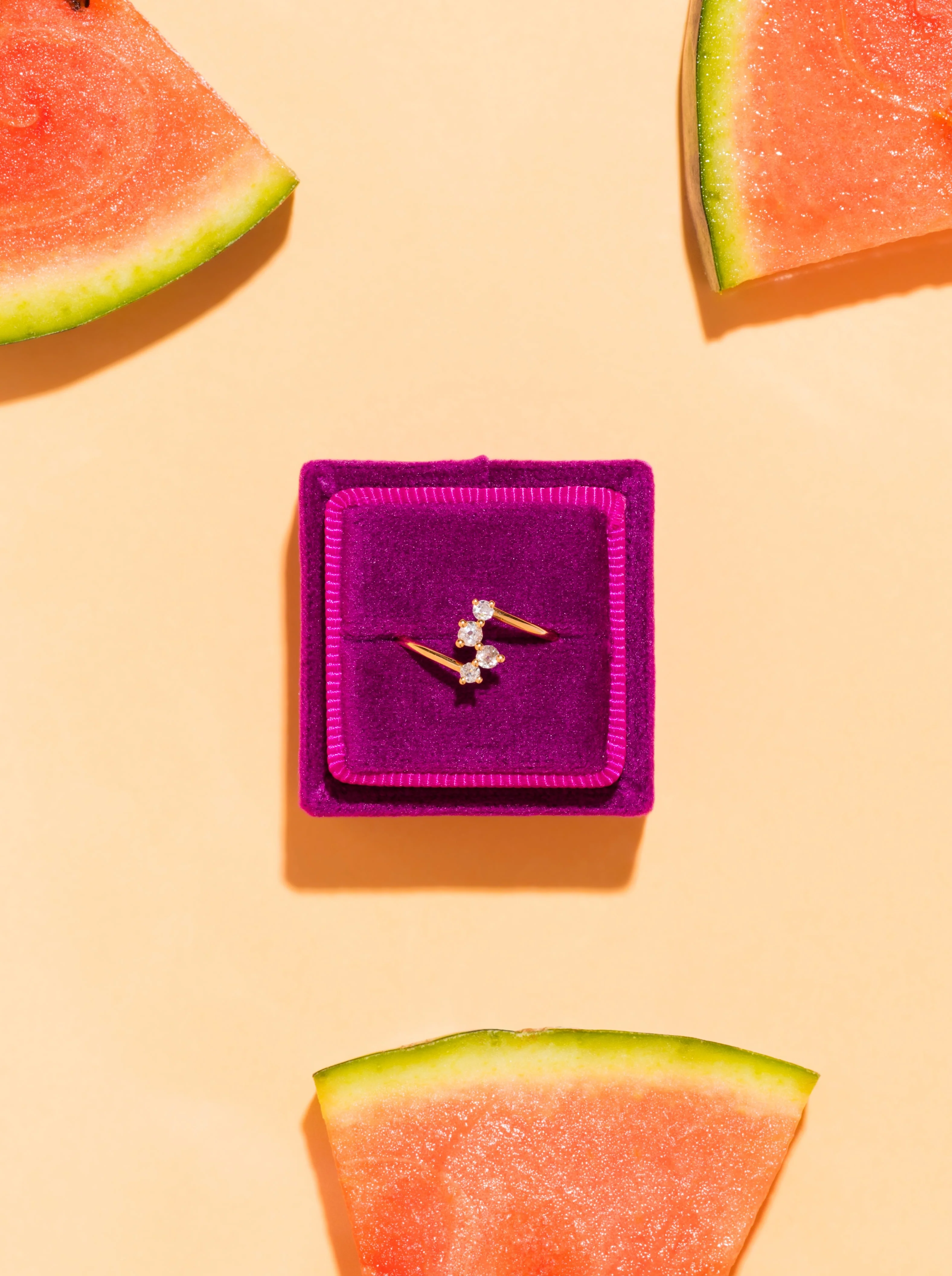 - Bague Hannah en or rose recyclé 18 cts, sertie de 4 diamants recyclés de taille brillant, de qualité G/H, pureté Vs/Si, pour un total de 0,24 ct.